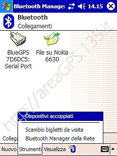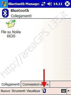 Aprire Bluetooth Manager (Gestione Bluetooth) sul Pocket PC per creare una connessione Bluetooth con il ricevitore GPS. |