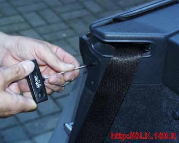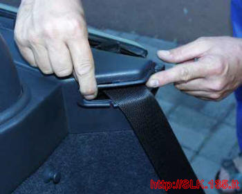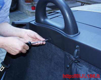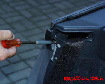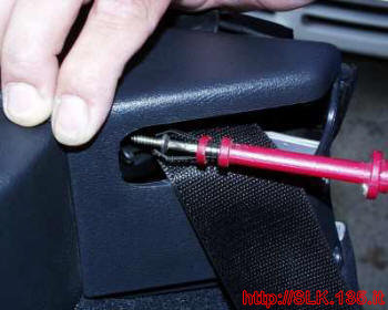 sganciare il bordino su cui scorre la cintura di sicurezza (dietro si trova un’altra vite)