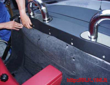 Scostare la moquette e procedere allo smontaggio dei rollbar togliendo i quattro bulloni di ancoraggio