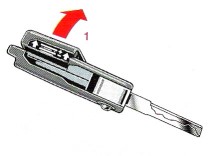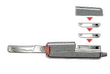 Estrarre la chiave principale e premere il coperchi della batteria (1) per aprirlo