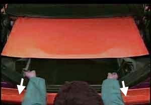 Qui la (seconda persona) traziona il cofano del bagagliaio sganciandolo dalle cerniere.