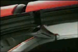 Introdurre il tetto con i perni nella cornice del parabrezza fino alla completa chiusura dello stesso.