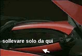 e la si ruota in senso orario per aprire i ganci dell’attacco, il tetto scatta.
